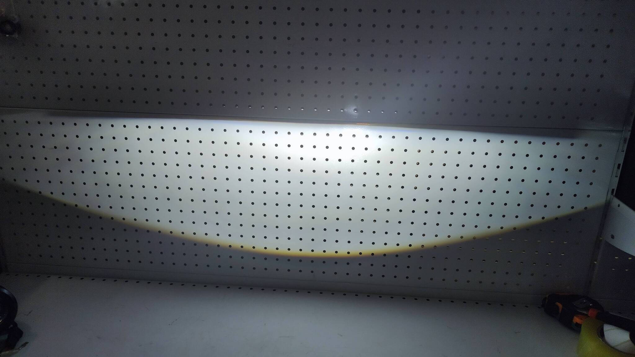 Ровная светотеневая граница ближнего света с широким охватом обочины.