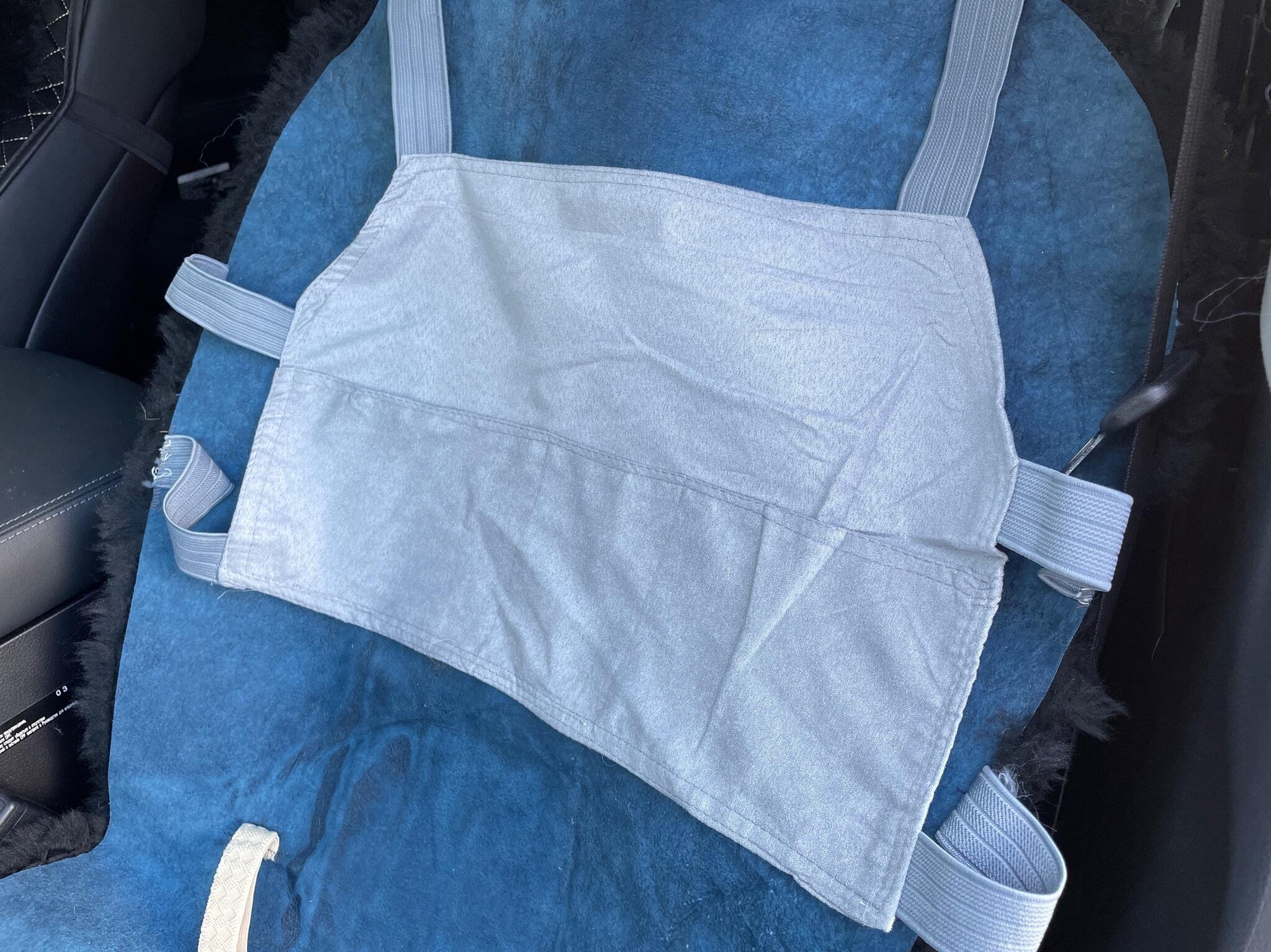 Крепления накидки представляют собой: верхнее крепление - резинки, крепятся за подголовник; карман на резинках; среднее крепление - пластмассовые барашки, устанавливаются между спинкой и сиденьем; нижнее крепление - металлические крючки.