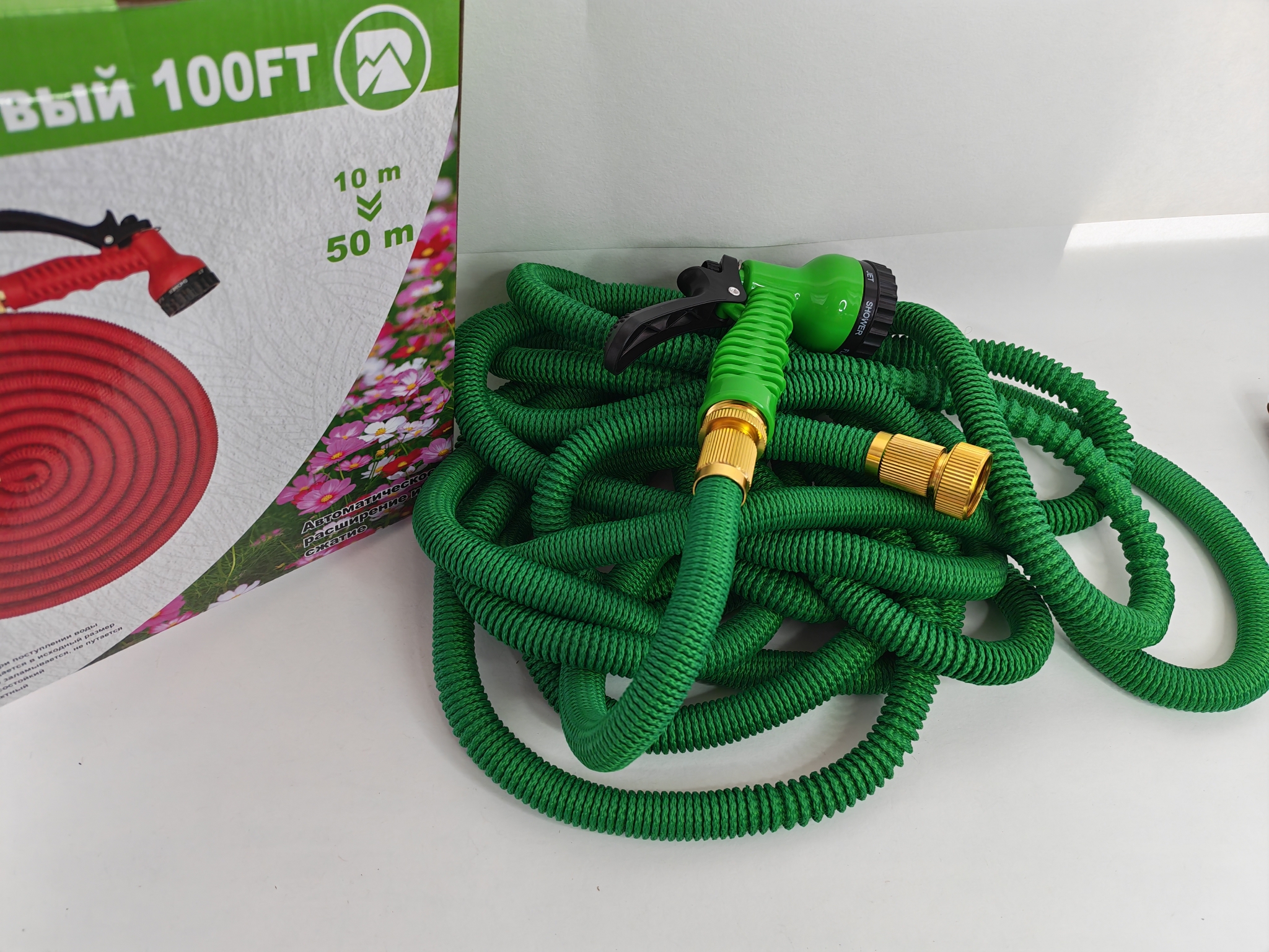 50М шланг садовый растягивающийся 10-50 метров с насадкой распылителем.