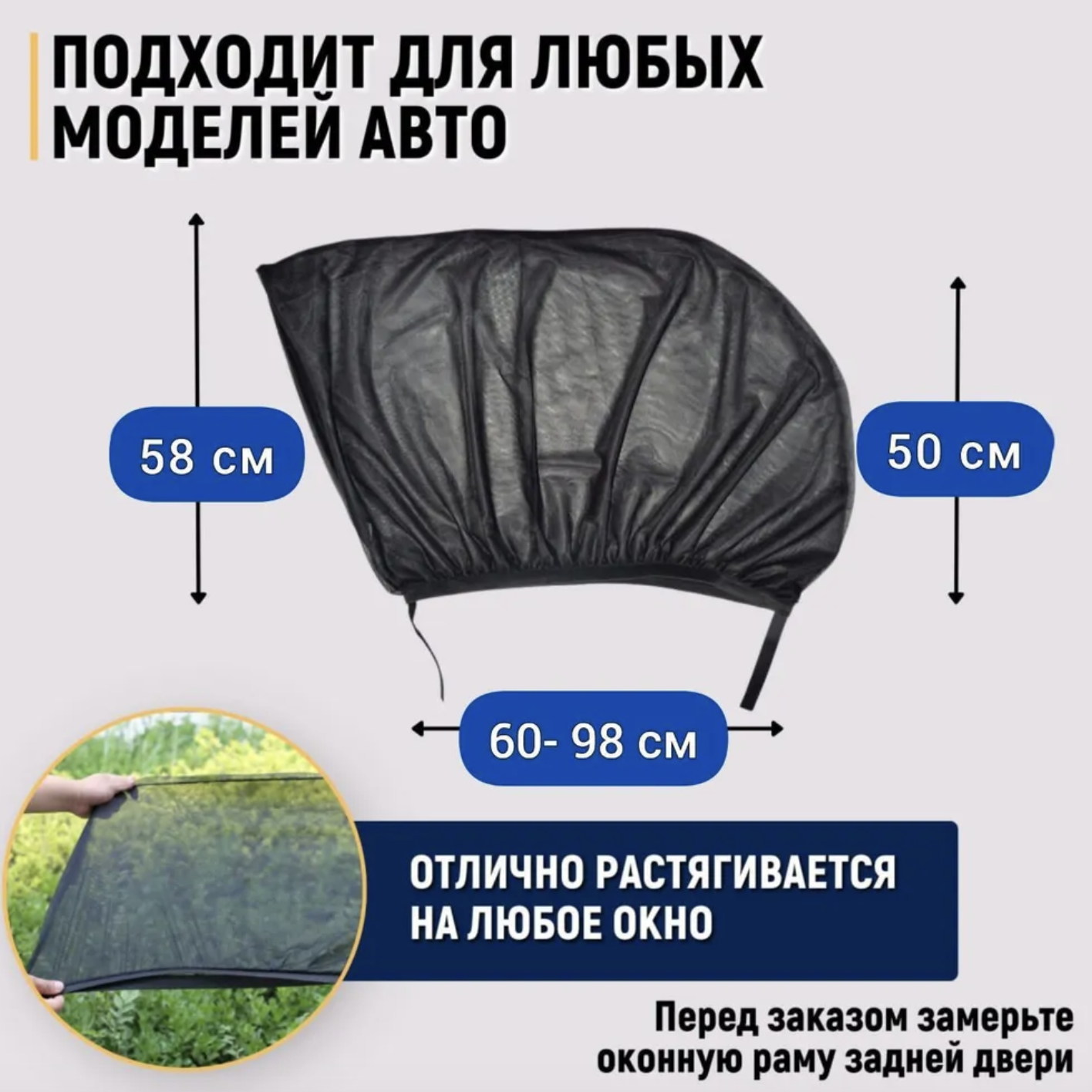 Универсальная сетка которая не позволяет попадать излишнему свету и посторонним предметам в ваш салон.