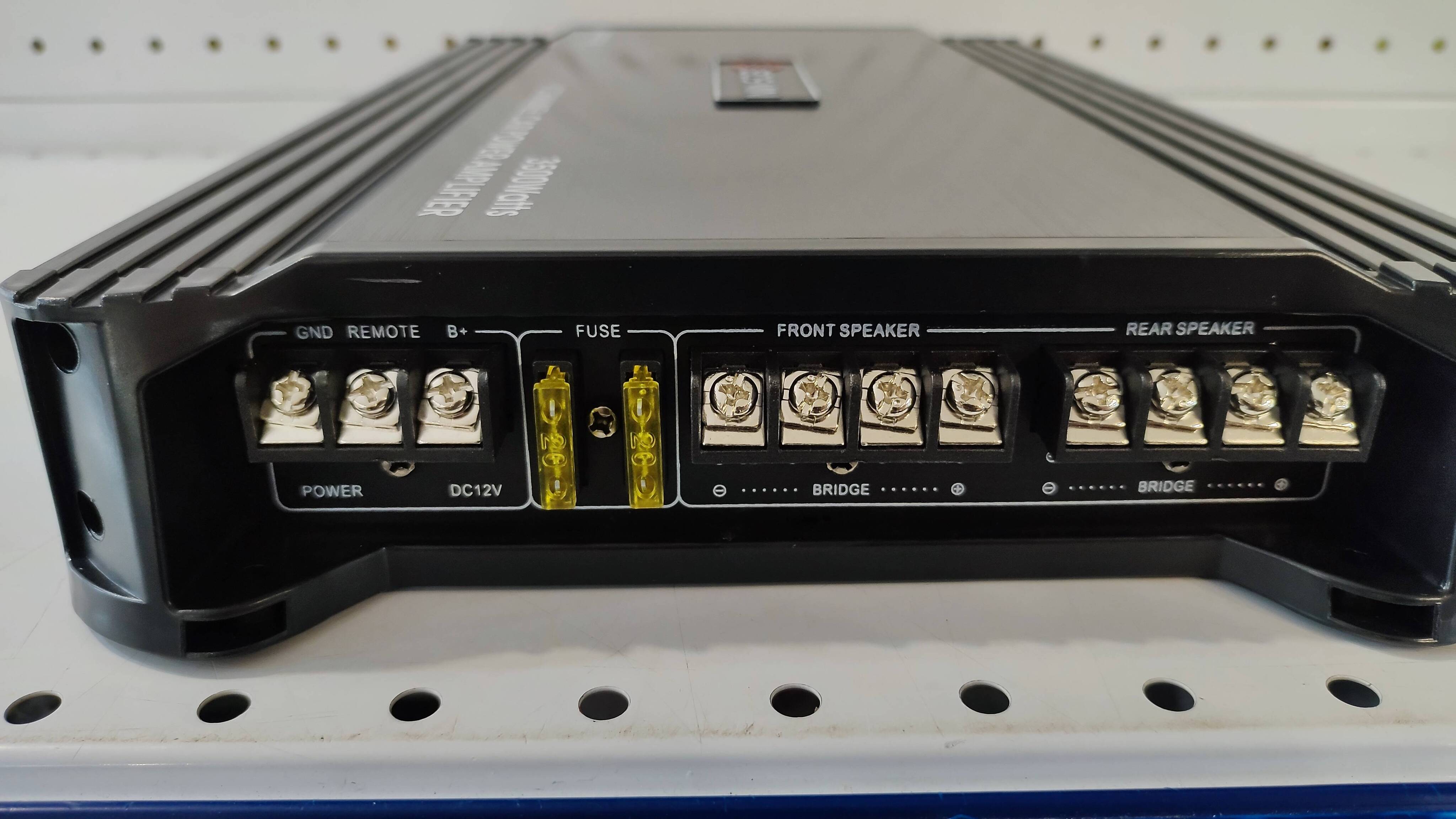 Автоусилитель GSF-51.4 3500 ватт 4-х канальный. Преображение сигнала низкого уровня в сигнал высокой мощности. Компактные размеры усилителя. 4 канала позволяет разделить сигнал сабвуфера по двум каналам для получения наиболее мощного и чистого звука низких частот. Номинальная мощность устройства насчитывает 4 Ом 4х100Вт или 2х200Вт. Четыре канала суммарная мощность до 200 Вт на канал. Максимальная мощность 3500 Ватт. Достаточно для создания глубокого и громкого звучание в Вашем автомобиле. Авто усилитель GSF-51.4 имеет 4 канала и представляет собой два двухканальных усилителя, объединенных в одном корпусе. Одна пара каналов предназначена для воспроизведения высоких частот HPF и другая - низких LPF. Имеется регулятор чувствительности. Встроенная защита от короткого замыкания, перегрева, слишком высокого или низкого напряжения.