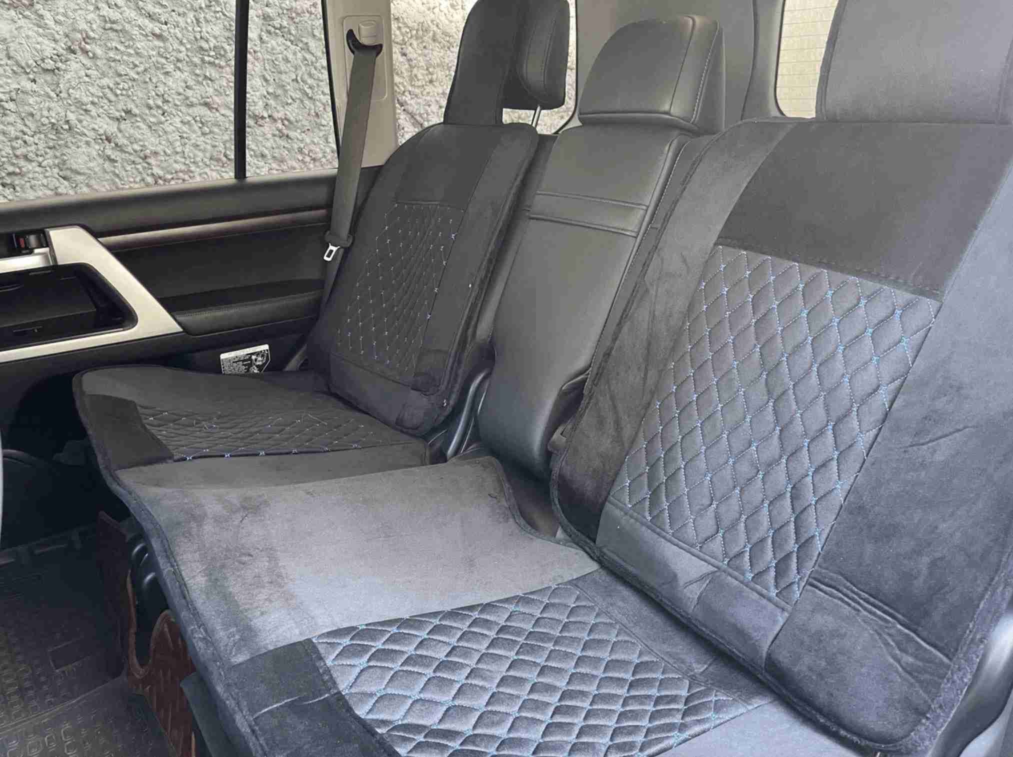 DD - 144 Синий / Комплект чехлов на сиденья, ткань черная, строчка синяя, замша, 5 предметов, серия: ком-фо (за комплект)