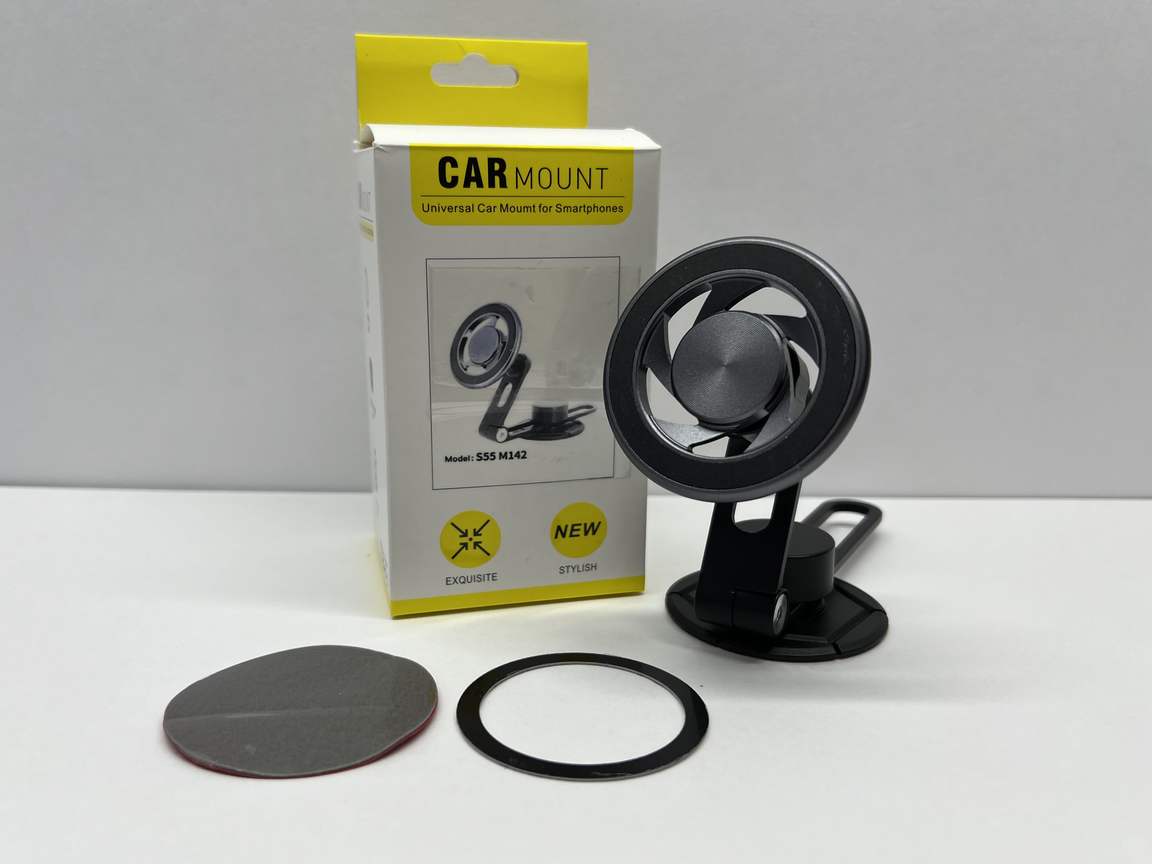 Держатель для телефона автомобильный в машину, на панель, с кольцом MagSafe, клеящаяся платформа, скотч + магнит, S55-M142, Цепкий (1 шт.)