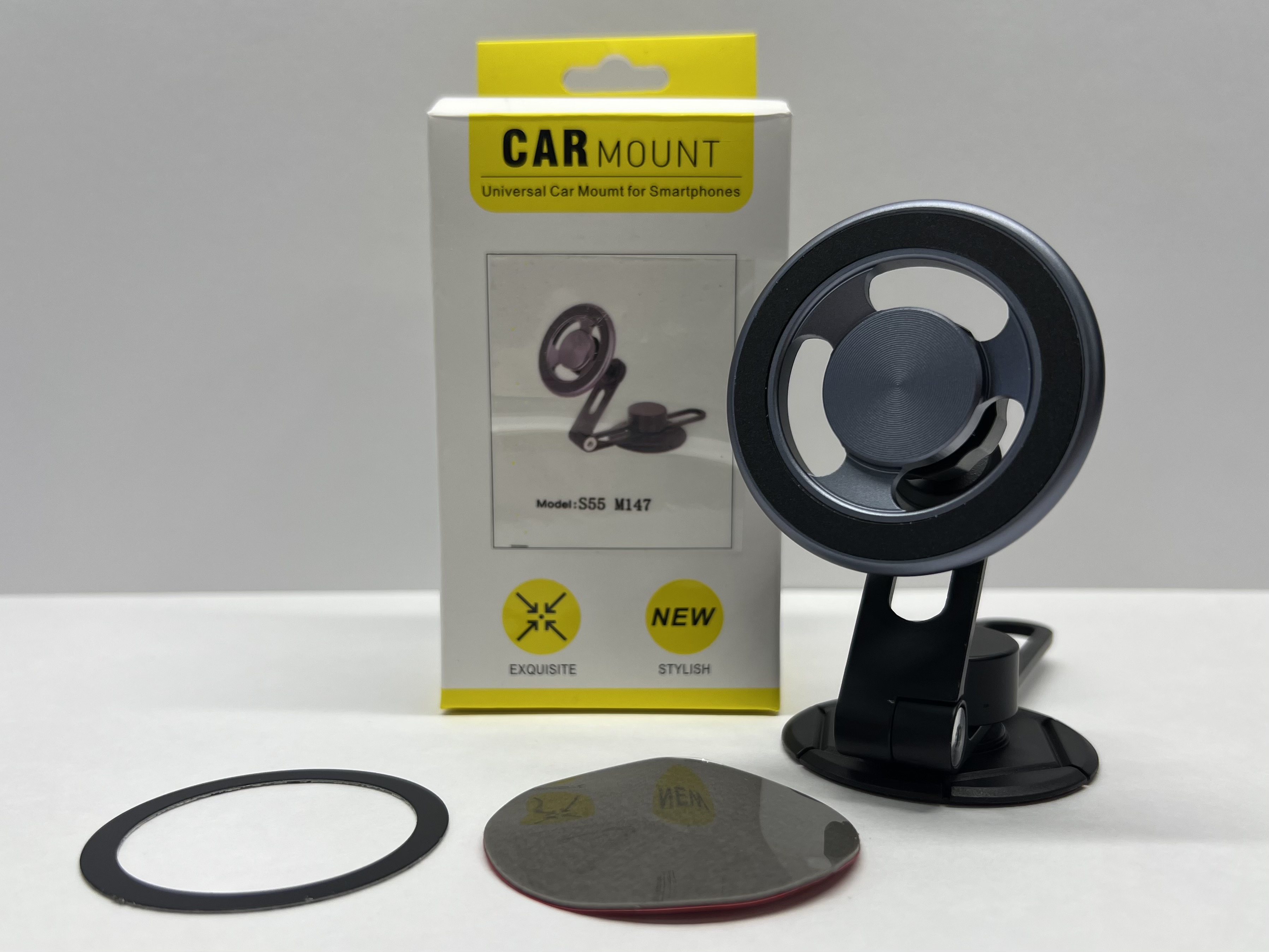 Держатель для телефона автомобильный в машину, на панель, с кольцом MagSafe, клеящаяся платформа, скотч + магнит, S55-M147, Цепкий (1 шт.)