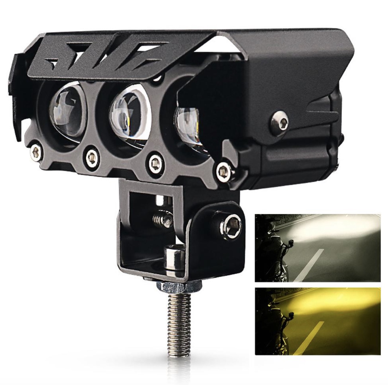 2. Двойной свет: Белый (6500K) для четкой видимости + желтый (3000K) для тумана, дождя и снега