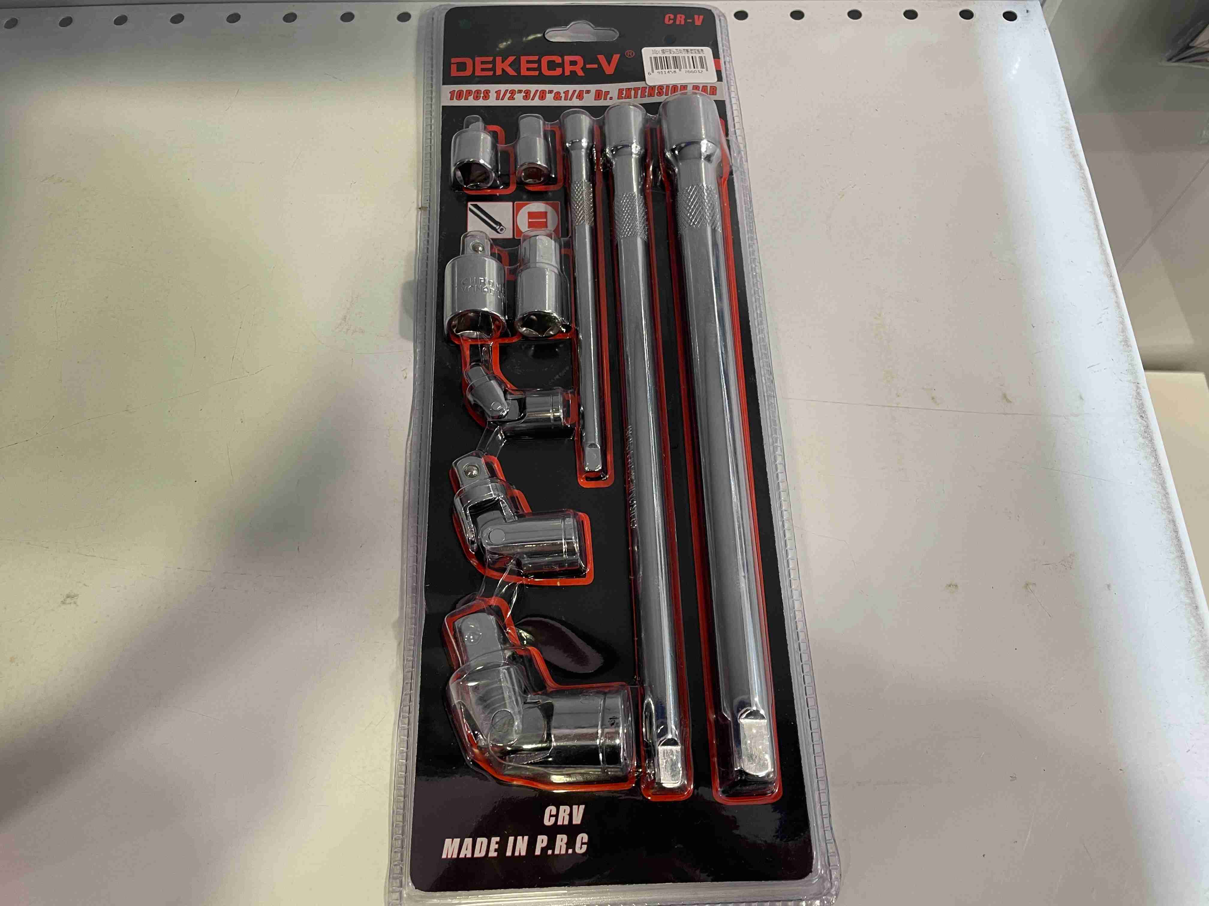 В наборе инструментов DEKECR-V Вы получаете 10 предметов. В комплект входят удлинители, карданные шарниры и адаптеры для перехода на другие размеры: