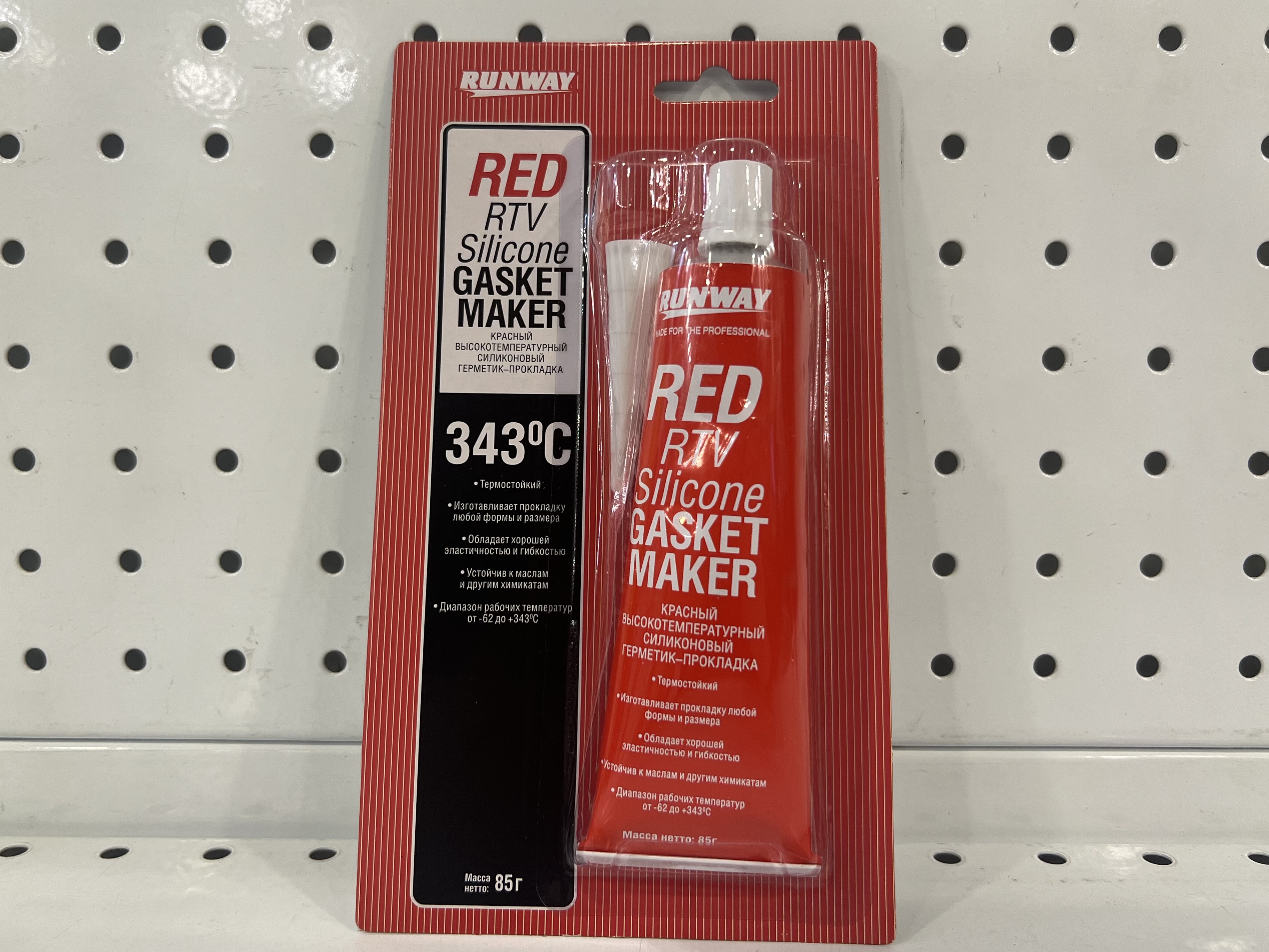 Красный универсальный силиконовый герметик RUNWAY 85 г. 343 C°