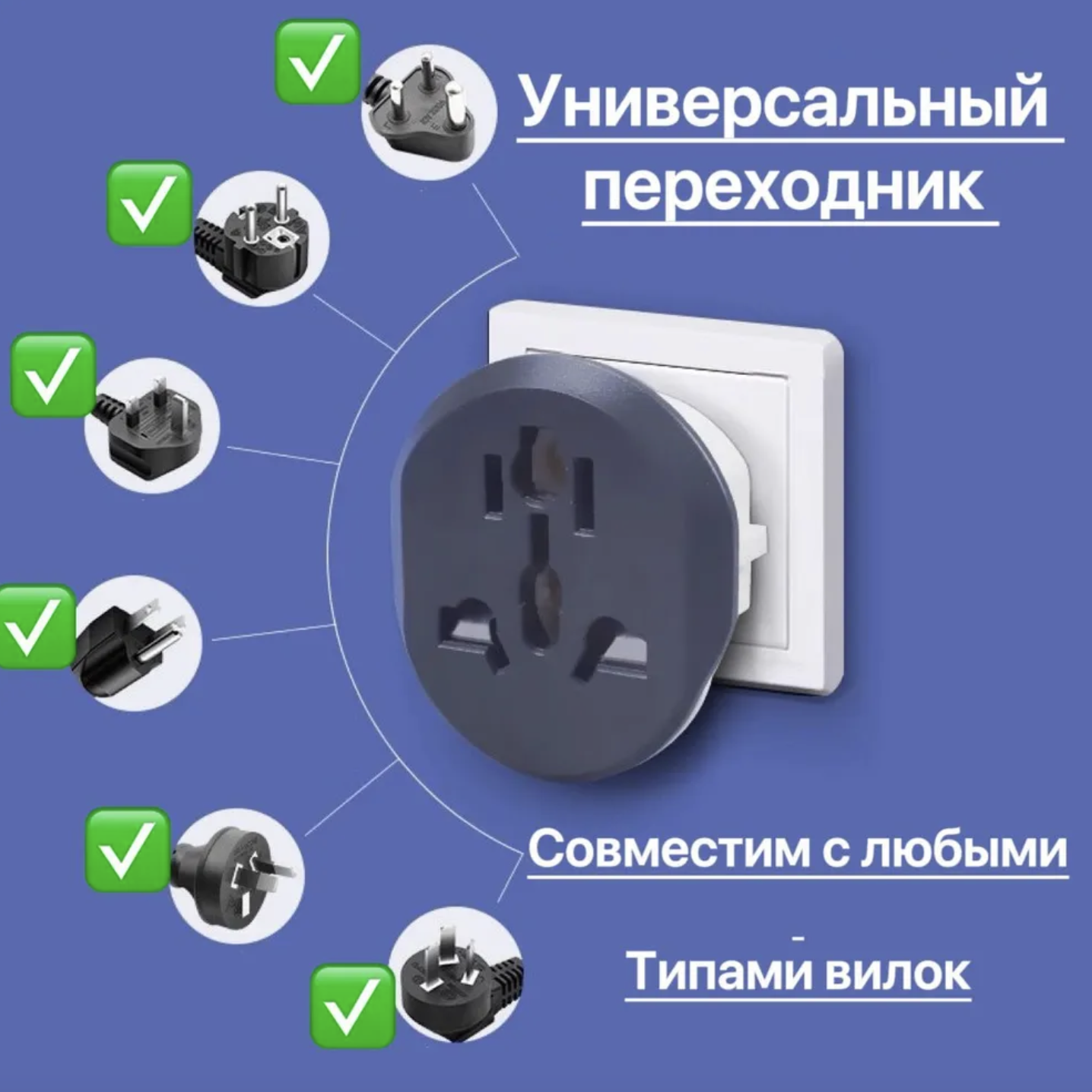Премиум сетевой адаптер на евро вилку с заземлением ,Евро-переходник на все виды розеток с китайской вилки на русскую 1шт