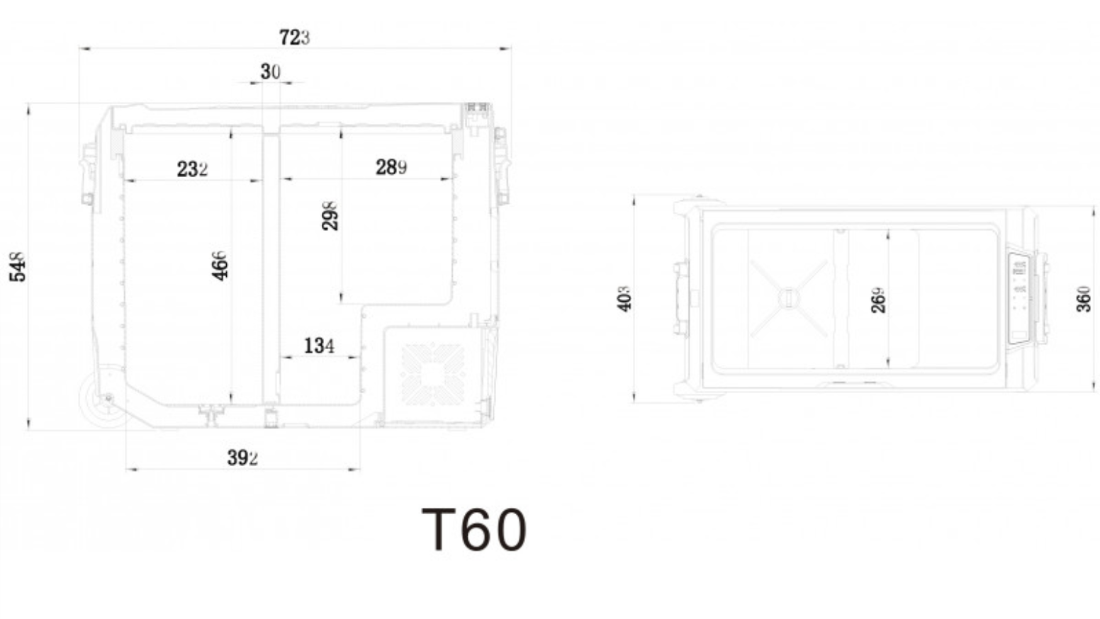 Крышка T60 – съемная. Это крайне удобная функция, поскольку благодаря ей, процесс извлечения/загрузки продуктов в автохолодильник становится куда более простым и быстрым.
